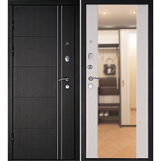 Входная дверь «Тепло-люкс» с зеркалом выделяется строгим дизайном и объемным 3Д рисунком панели. Предназначена для установки как снаружи, так и внутри помещений. Внешняя панель устойчива к атмосферным воздействиям. Дверь «Тепло-люкс» обладает превосходными тепло- и шумоизоляционными характеристиками. Это достигается применением двух толстых панелей МДФ, наполнением полотна минеральной базальтовой плитой, а также 3 контурами качественного уплотнения.